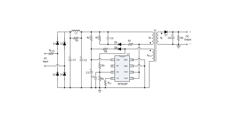 SP2639P是一款性能優(yōu)異的原邊反饋控制電路,應(yīng)用于小功率AC/DC充電器與適配器??刂齐娐肥褂迷叢蓸蛹夹g(shù)進(jìn)行精確的恒流、恒壓控制,可以省去一般應(yīng)用中的光耦與TL431。