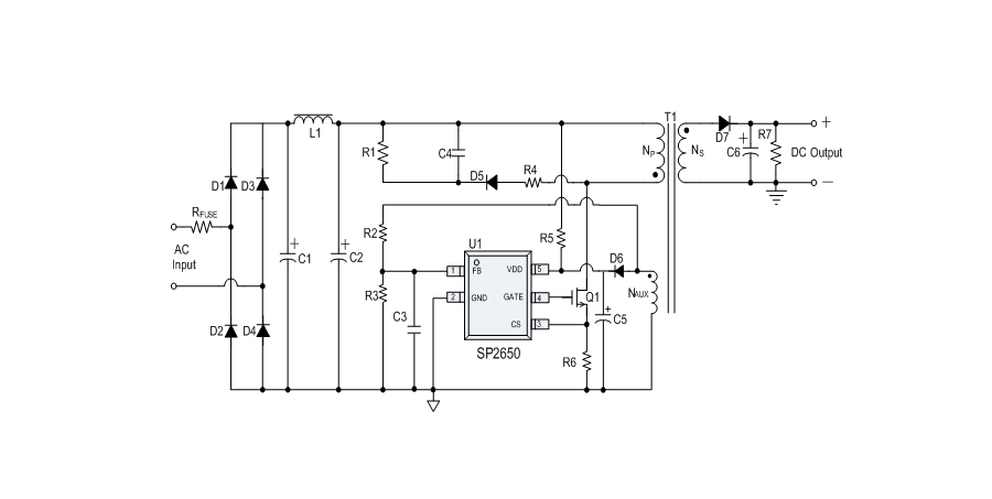 SP2650是一款性能優(yōu)異的原邊反饋控制電路,應(yīng)用于小功率AC/DC充電器與適配器。控制電路使用原邊采樣技術(shù)進(jìn)行精確的恒流、恒壓控制,可以省去一般應(yīng)用中的光耦與TL431。